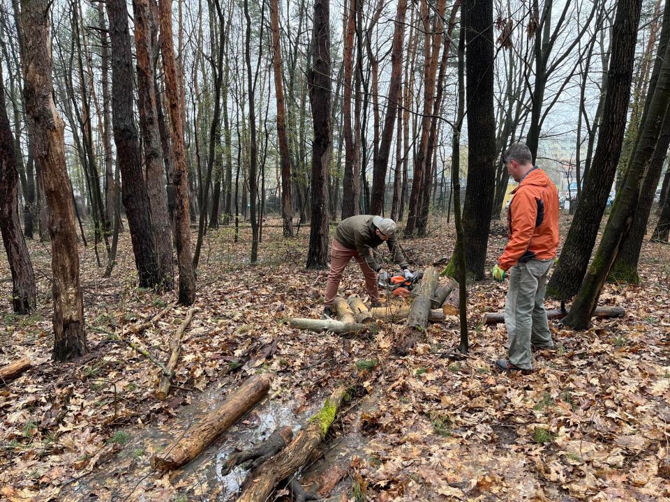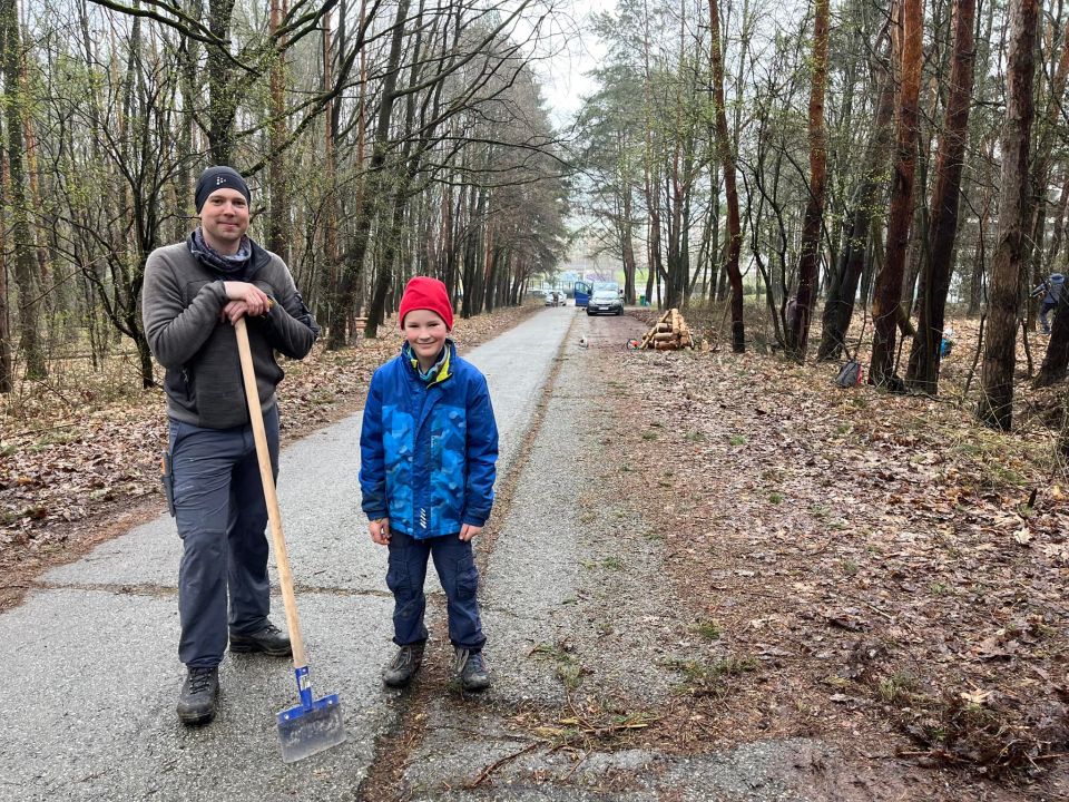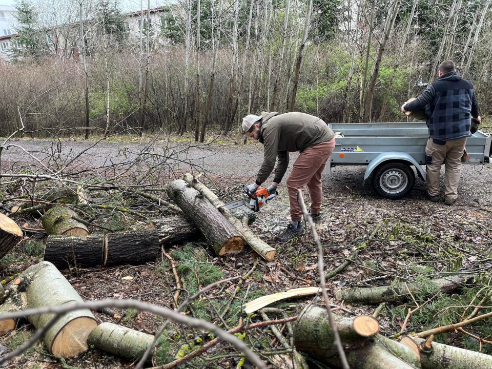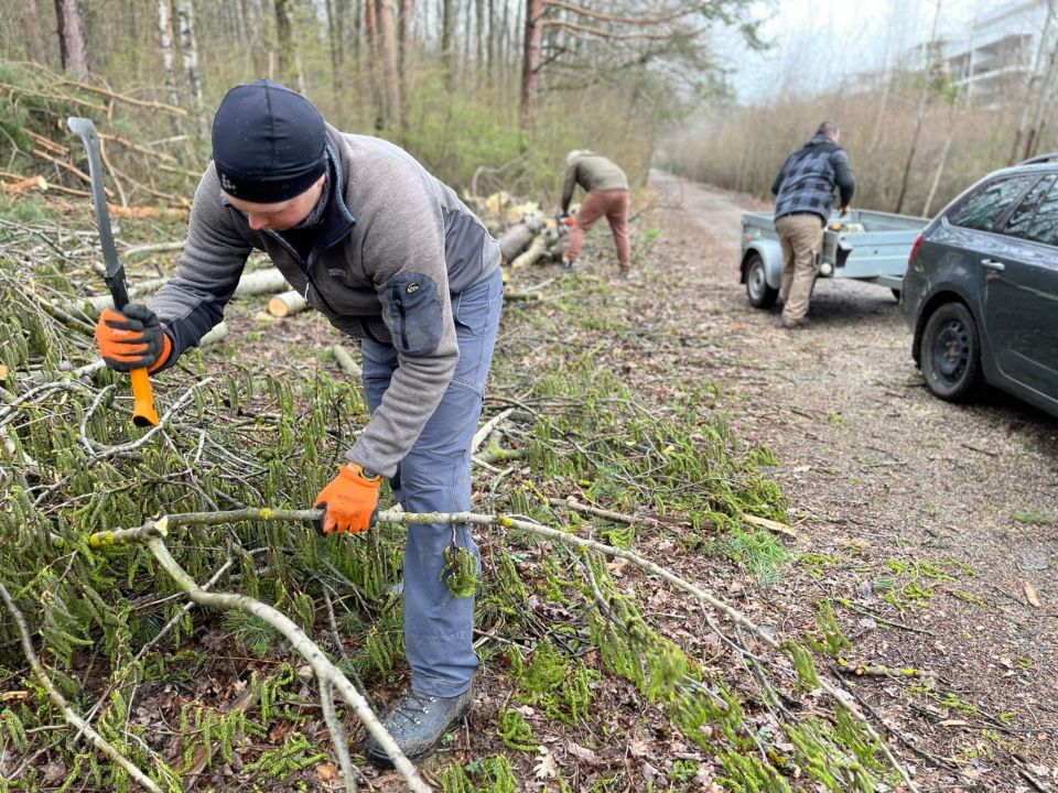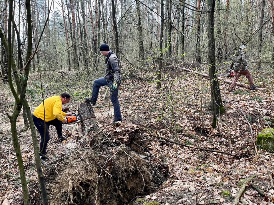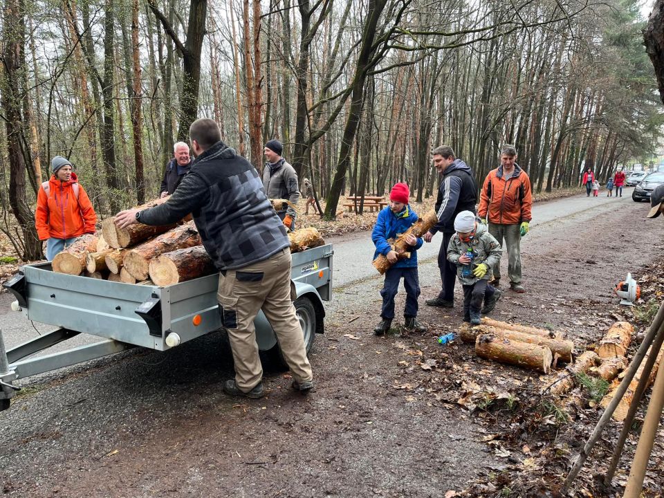 My sme však boli pracovne naladení a tak sme na chvíľu pokračovali v odstraňovaní následkov silného vetra, ktorý vyvrátil viacero stromov aj v Borovicovom háji.