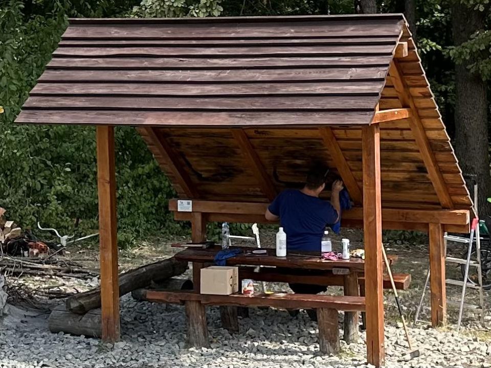 - odstraňovanie graffitov a obnova náterov na infotabuli a altánku.