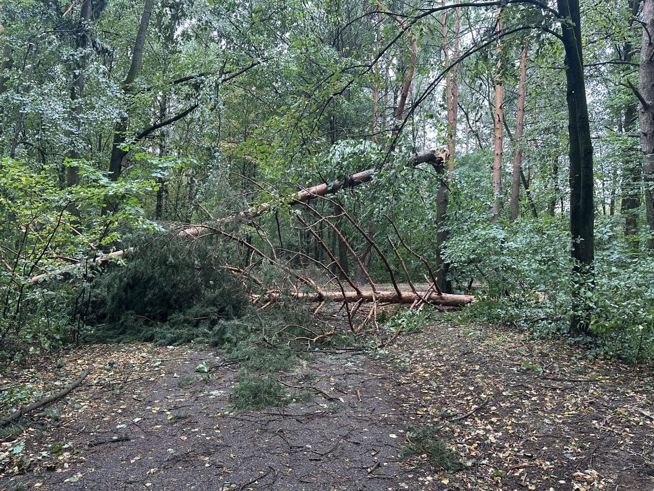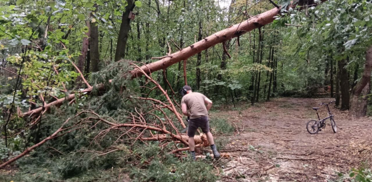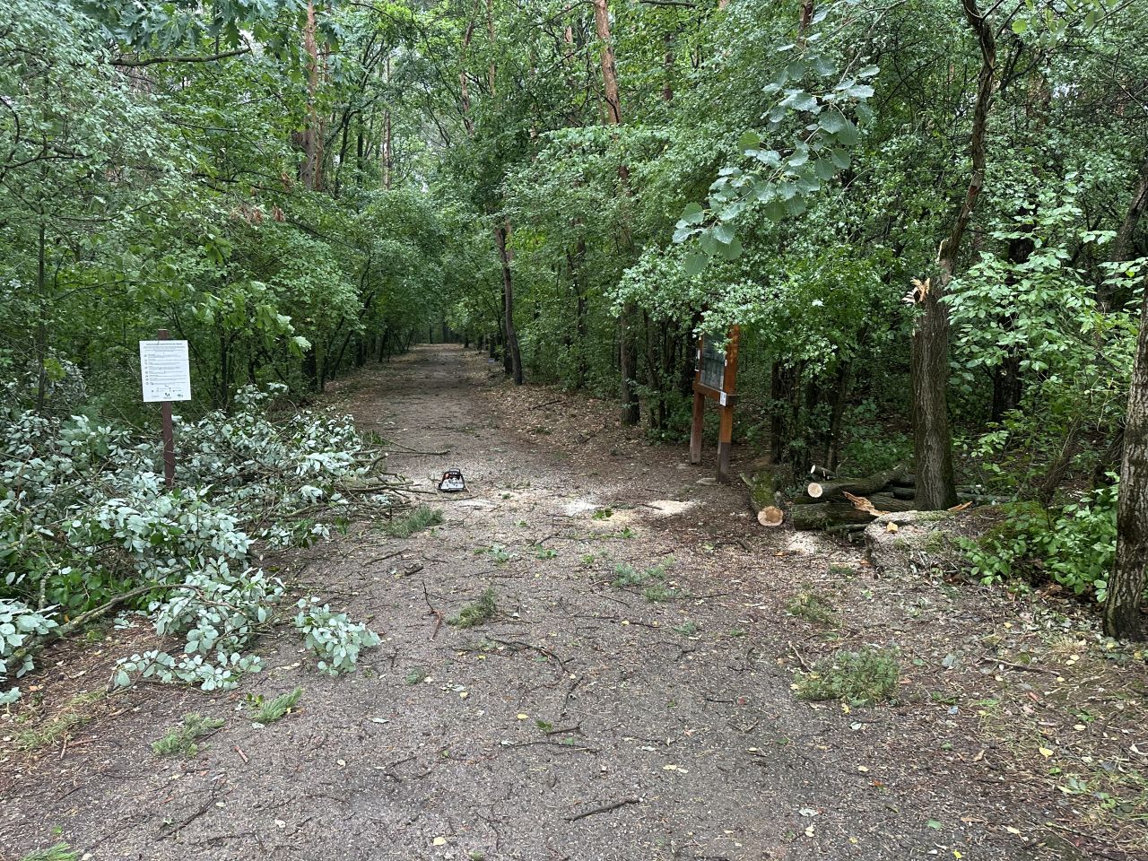 Búrka, ktorá vyčíňala aj v Borovicovom háji v pondelok 7. júla, našťastie, nezanechala žiadne škody na parkovom mobiliáry. Polámané stromy sme porezali, aby boli chodníky priechodné. Vyššie stromy v priebehu utorka spílili privolaní požiarníci. Drevo z padnutých stromov v najbližších týždňoch presunieme postupne k ohniskám.